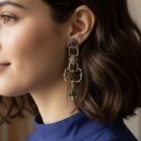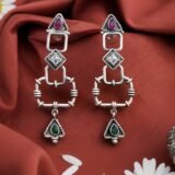 Pair of elegant silver earrings with intricate designs and three beautiful gemstones – one white, one green, and one red. The earrings are made of silver 925 and are a perfect accessory for any outfit. The delicate design and sparkling gemstones make them a standout piece of jewelry.