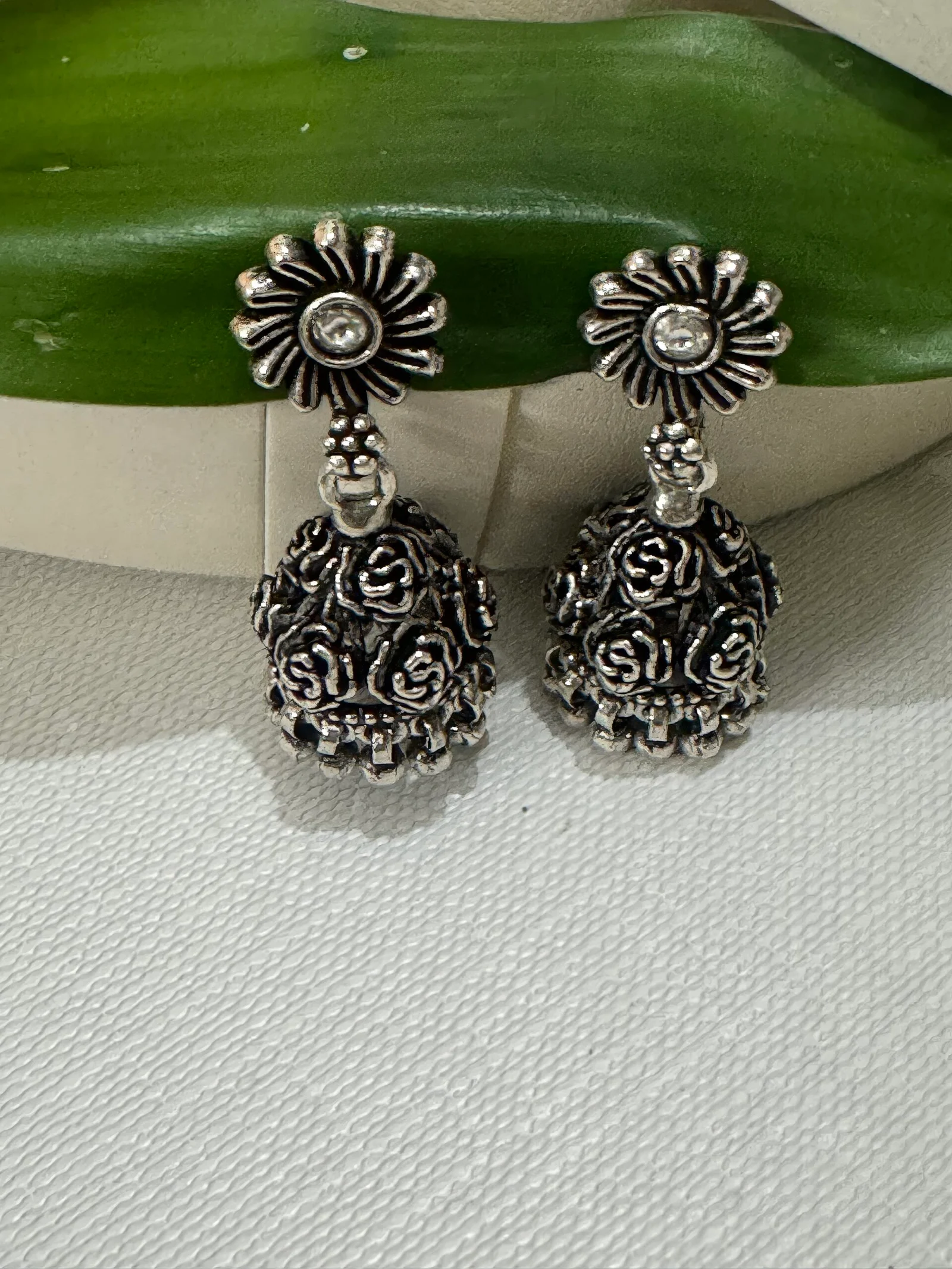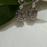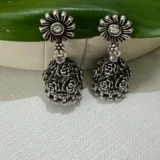 Discover the allure of our Silver 925 Oxidized Jhumkis. Handcrafted to perfection, these earrings showcase the timeless beauty of oxidized silver, exuding a unique charm and character. The intricate design features a captivating floral motif, adding a touch of elegance to any outfit.