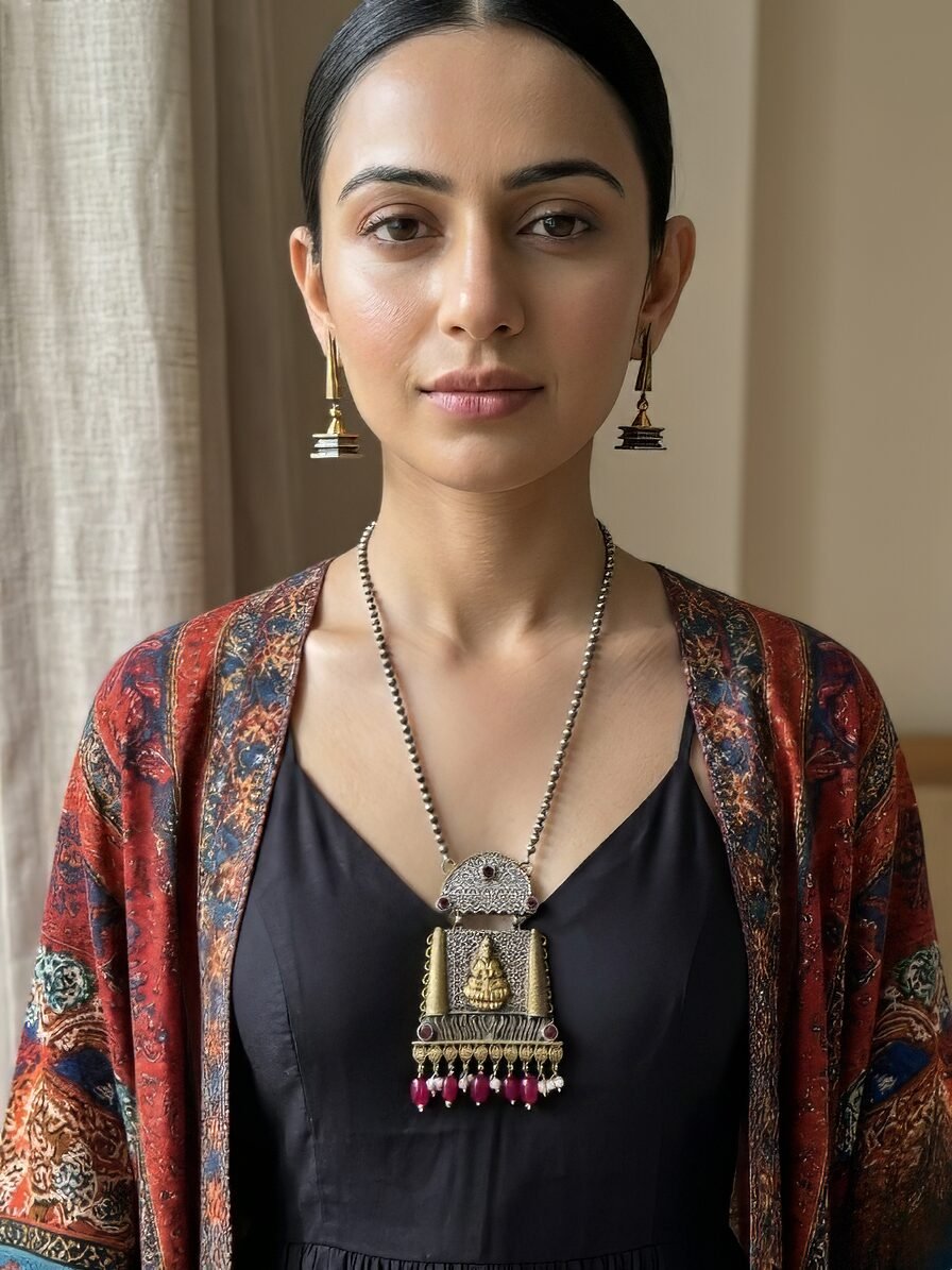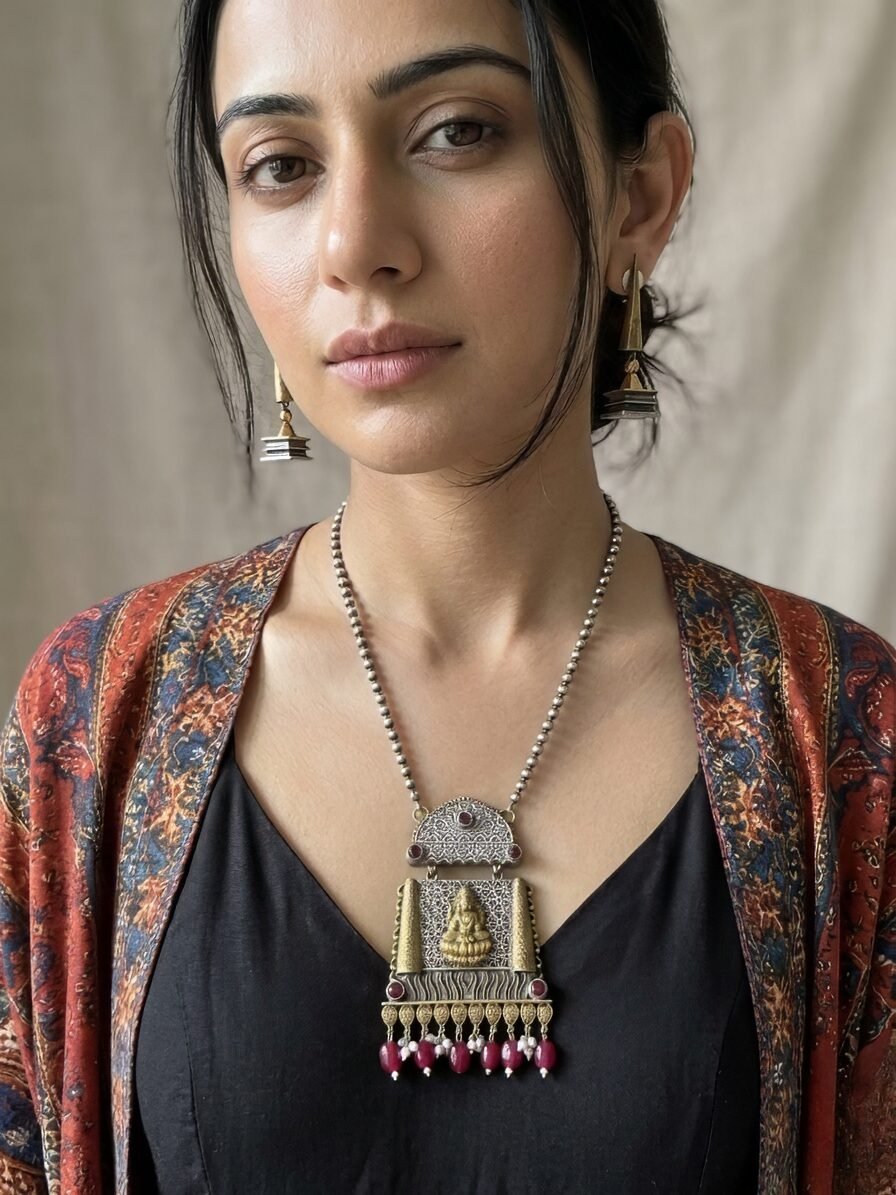 - Premium Oxidized Silver & Antique Gold Finish for an authentic temple jewelry appeal