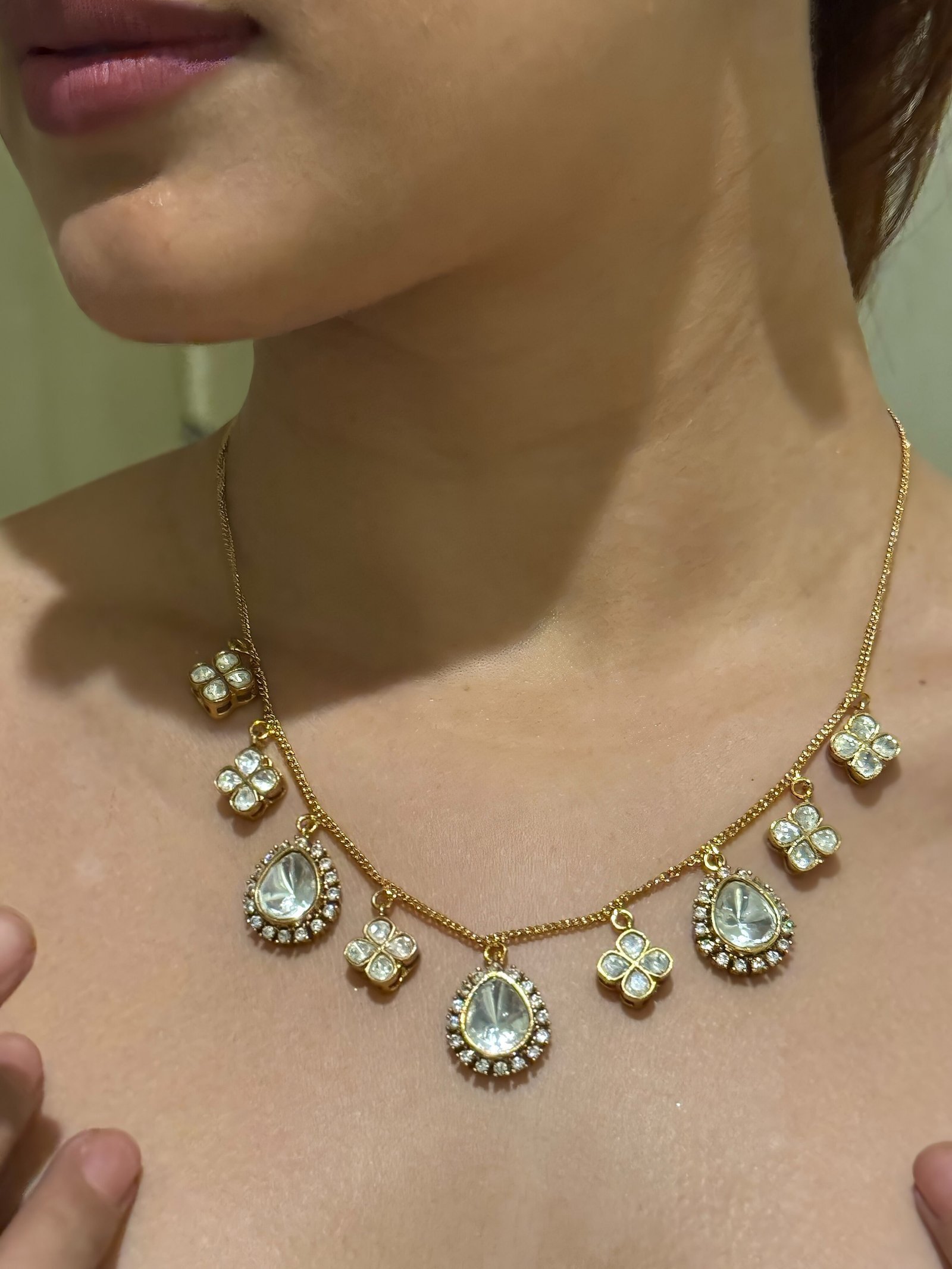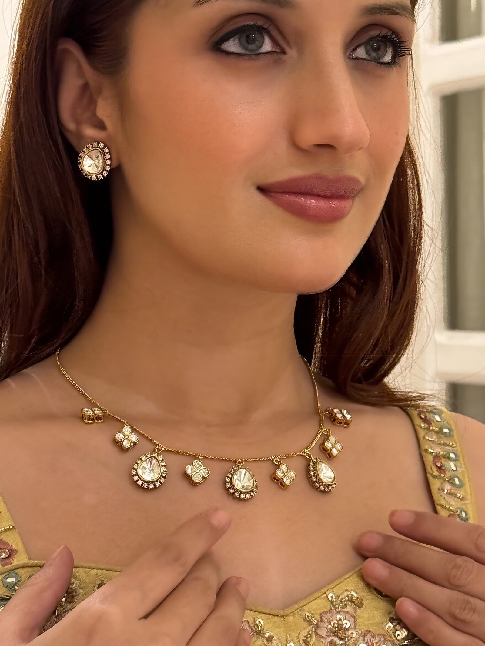 ✨ Fusion Look: Combine it with a chic Indo-western outfit like a long cape over trousers or a dhoti-style skirt with a crop top. Add minimal heels and let this necklace shine as the focal point.