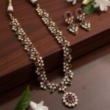 Be the first to review “Traditional Multicolor Stone Necklace Set in Gold Finish” Cancel reply
