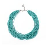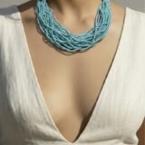A symphony of serenity and strength, this handcrafted necklace features multiple strands of smooth, round turquoise beads intricately twisted into a voluminous, rope-like silhouette. The vibrant turquoise hue evokes calm seas and open skies, offering a refreshing pop of color that complements both ethnic and contemporary wardrobes.