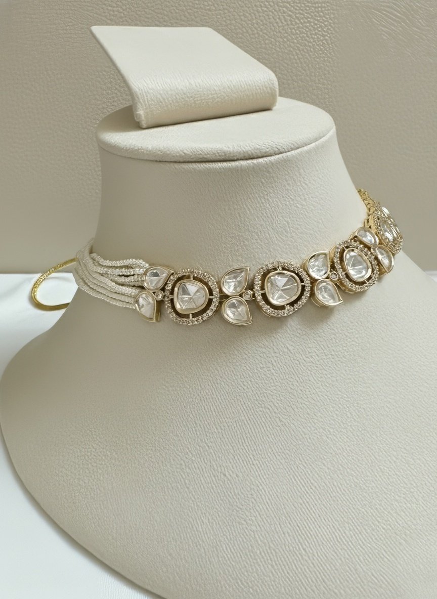 Each strand is meticulously arranged to create a rich, layered texture that sits gracefully along the neckline. The necklace is finished with a sleek silver-tone lobster clasp and an adjustable extension chain, ensuring a comfortable and customizable fit for various necklines and styling preferences.