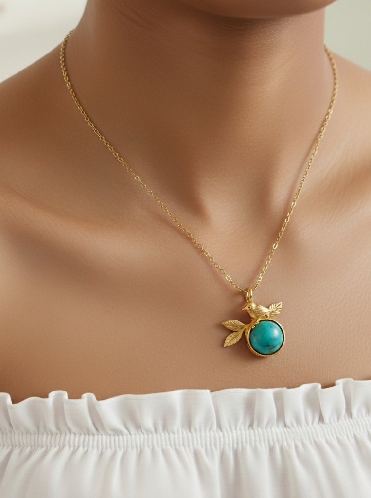 Vintage Bird Pendant with Turquoise Stone on Alloy-Copper Chain – Shivanshri